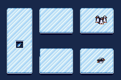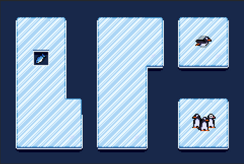 Slide across the ice as a penguin, pick up the fish, and deliver it to the penguin group.